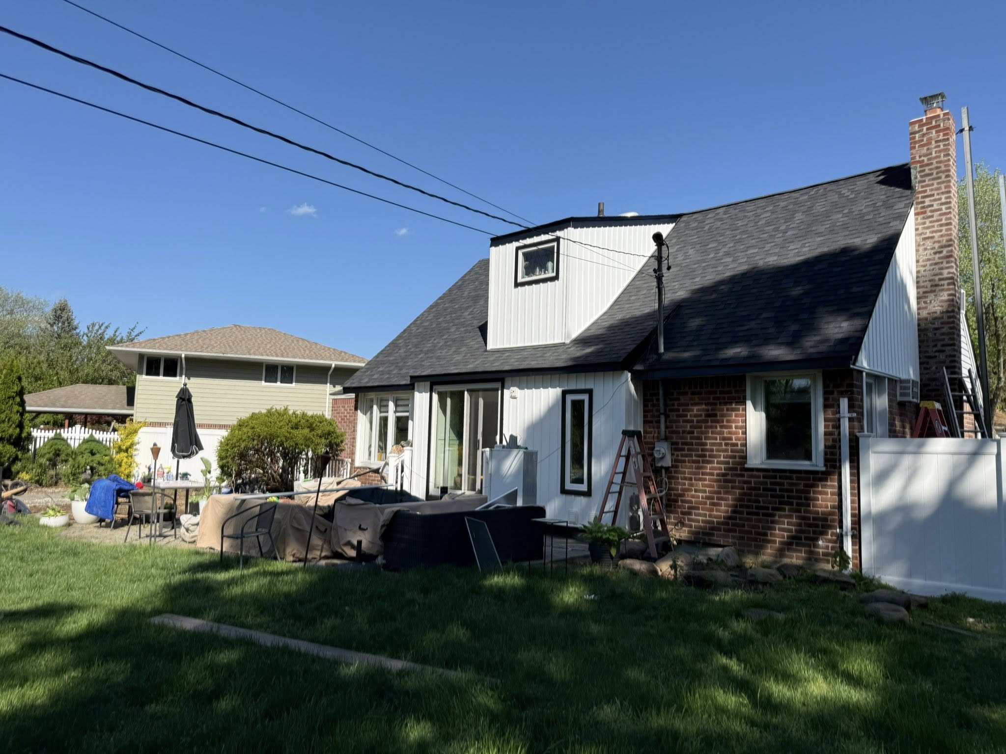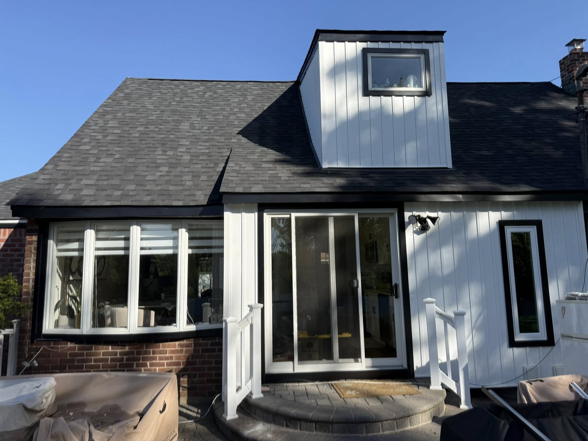 White Board and batton siding with the black trim, black gutters getting installed Monday, and this house is finally complete full interior and exterior Reno!