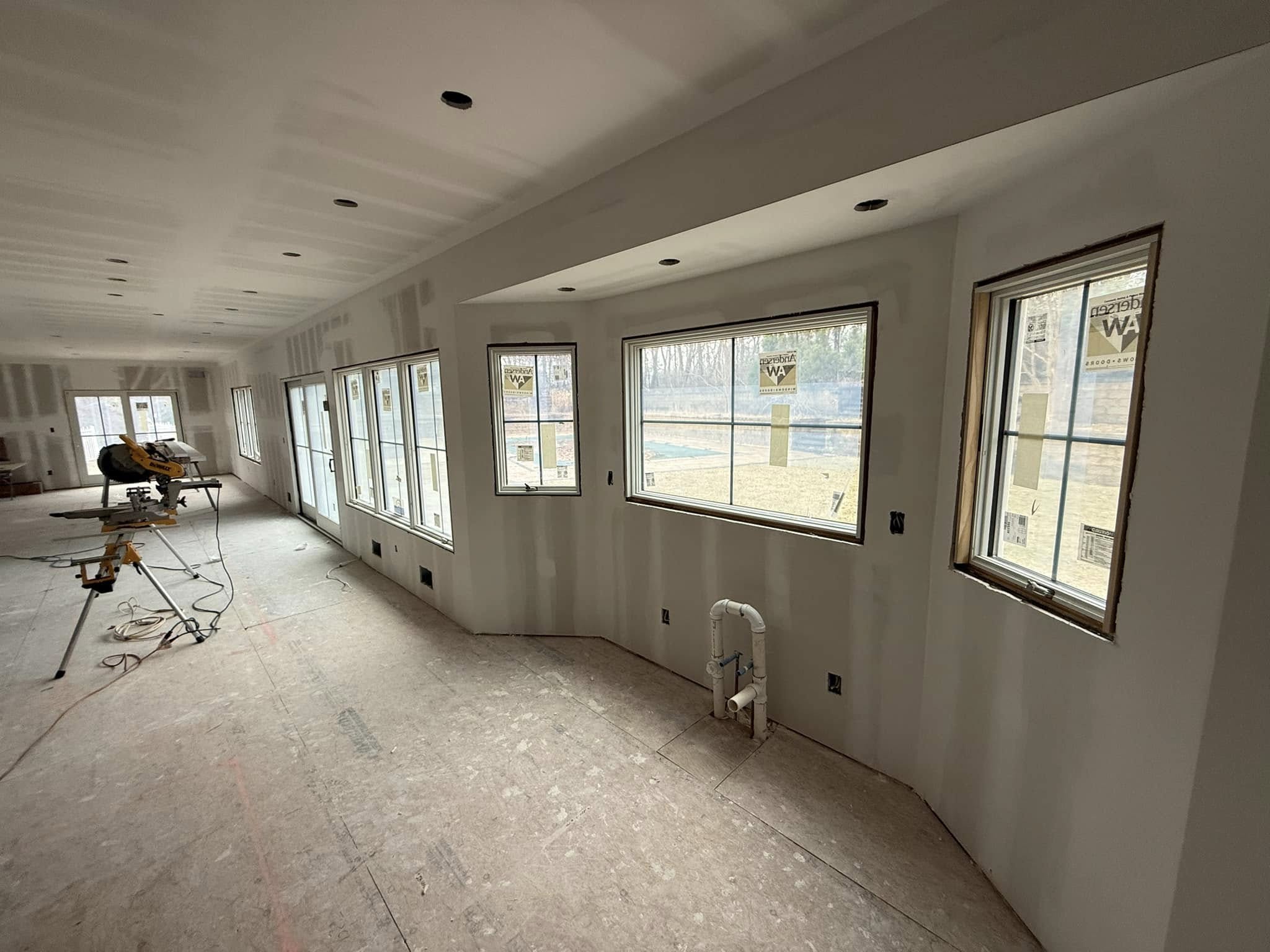 Drywall and spackle complete, Extension jambs and Windsor window casing in progress, stairs and bullnose installed and hardwood on the way.